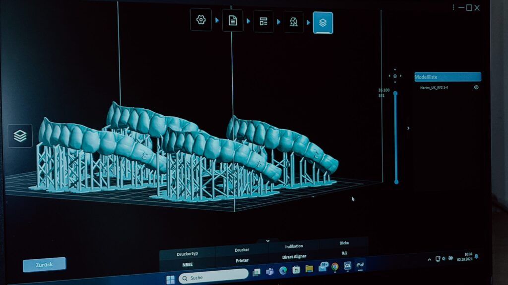 Ein besonderes Plus: Wir fertigen Ihre Aligner direkt in unserer Praxis mit modernster 3D-Drucktechnologie. Dadurch können wir Behandlungen individuell anpassen, Wartezeiten minimieren und höchste Präzision gewährleisten – für optimale Ergebnisse, genau auf Sie abgestimmt.